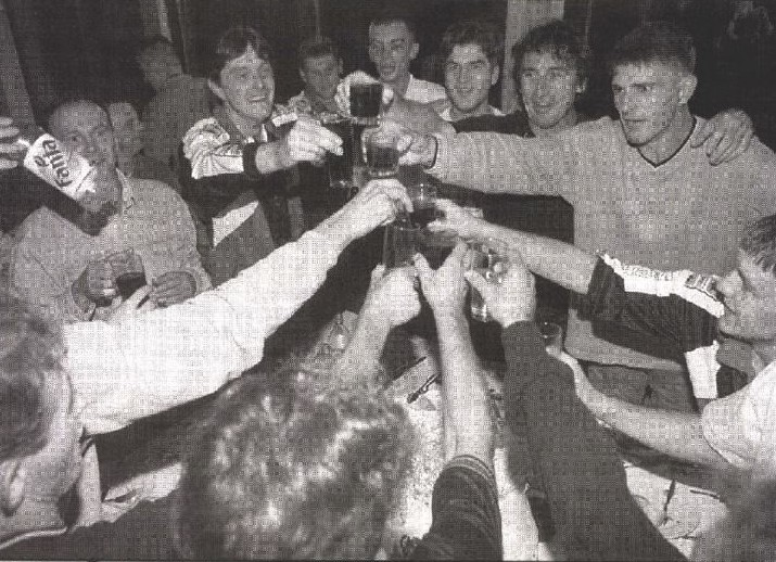 Na fotografiji iz Večernjeg lista vidimo slavlje nakon utakmice.