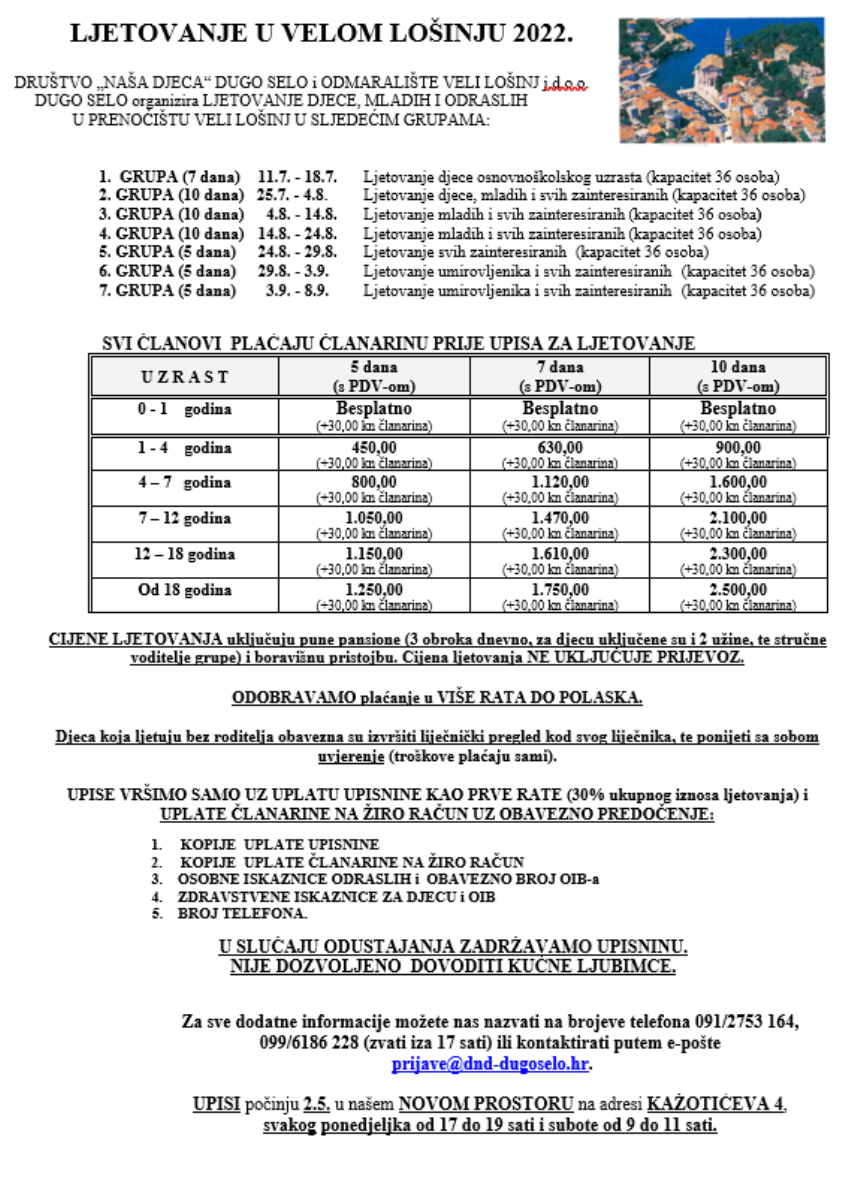 Društvo "Naša djeca" Dugo Selo ponovno otvara vrata odmarališta u Velom Lošinju.