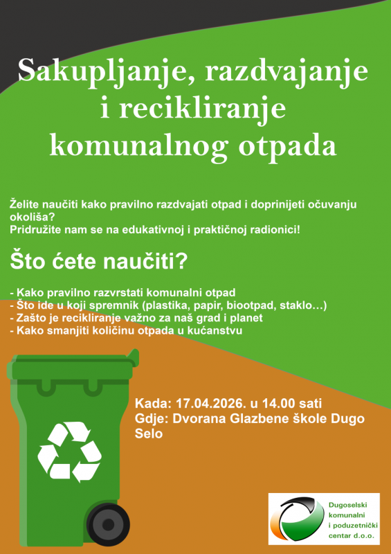Pučko otvoreno učilište Dugo Selo organiziralo je za najmlađe sugrađane oslikavanje eko bojanke „Bojanku oboji, otpad odvoji“ kroz koju će naučiti kako do još čišćeg i ljepšeg grada, dok ih u subotu očekuje predstava Eko klik koja djeci na zabavan i poučan način približava važnost očuvanja okoliša.