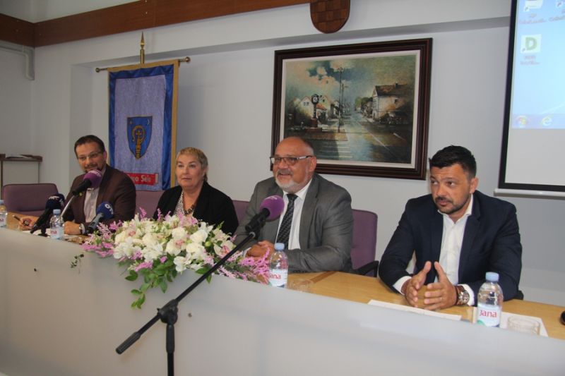 Tiskovnu konferenciju održao je danas gradonačelnik Dugog Sela Nenad Panian, zajedno sa svojim suradnicima zamjenicom Jasminkom Kokot Bambić i pročelnicima odjela - za pravne poslove, društvene djelatnosti i protokol Borisom Savićem te za financije i komunalno gospodarstvo Deanom Dragičevićem. Uz prezentaciju realiziranih projekata, gradonačelnik Panian najavio je i novi, veliki projekt Sportsko-edukativni centar vrijedan 100 milijuna kuna.