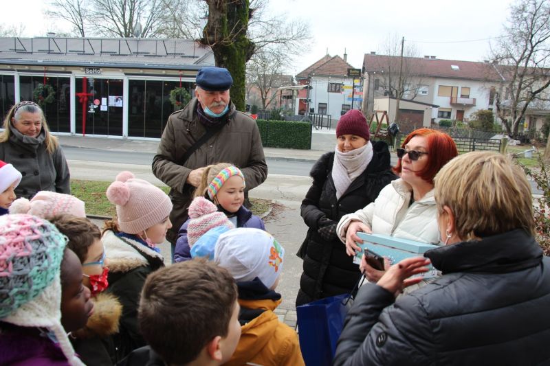 Učenici 2. b razreda Osnovne škole "Ivan Benković" i njihova učiteljica Sofija Štefanac izradili su posebne likovne radove s akrilnim bojama. Kako nam je pojasnio njihov mali „glasnogovornik“ Dominik Tešić – „radovi izgledaju kao božićne plosnate kuglice koje su izradili na plastičnim vrećicama, a učiteljica ih je stavila u okvire za goblene“. Prigodnih motiva - zimskog ugođaja, okićenog bora i mnoštva poklona u čizmici – radovi privlače pažnju svoju razigranošću i nevinošću.