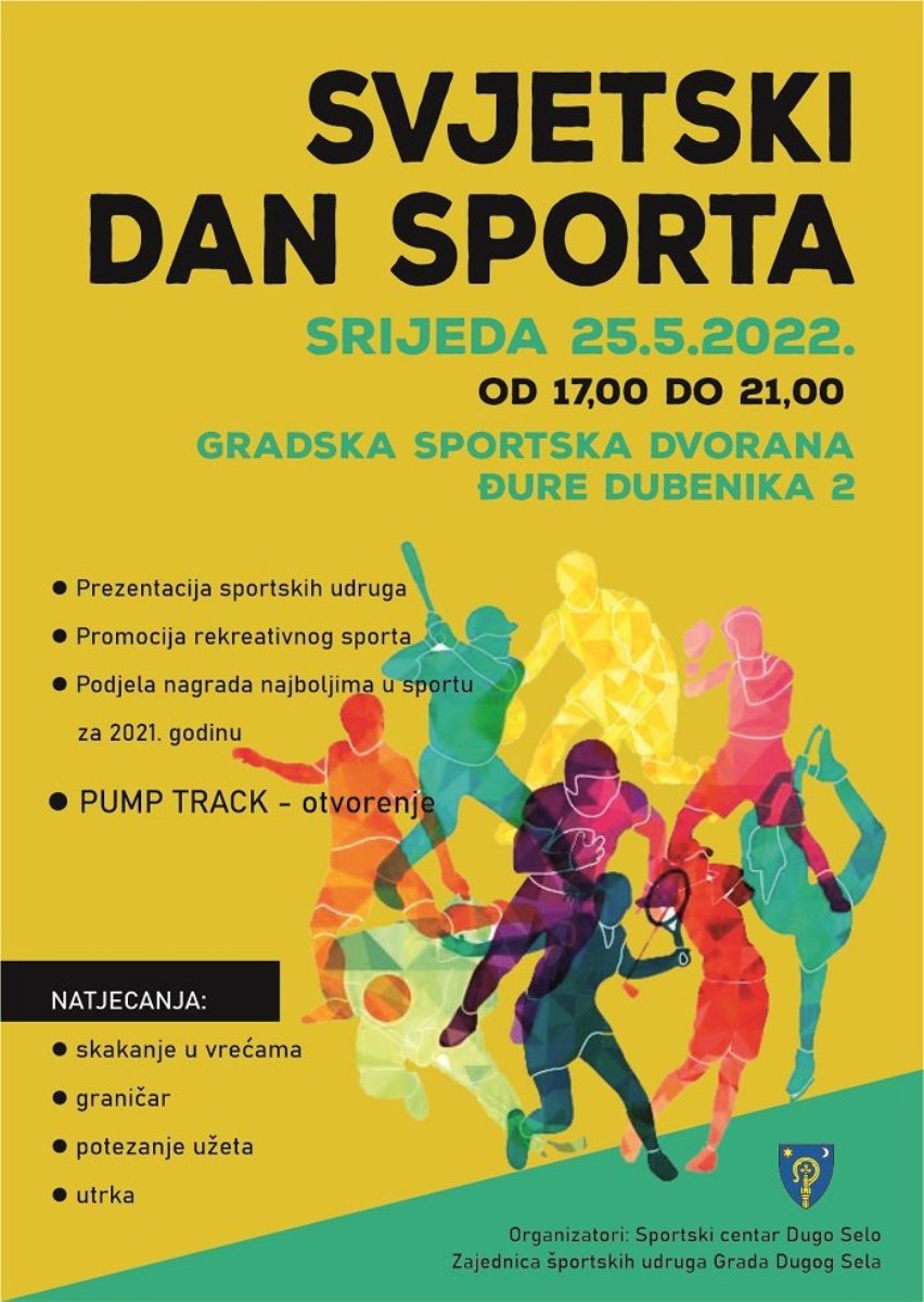 Dana 25. svibnja (srijeda) Sportski centar Dugo Selo i Zajednica športskih udruga Grada Dugog Sela obilježavaju Svjetski dan sporta kod Gradske sportske dvorane (Đure Dubenika 2, Dugo Selo) s početkom u 17:00 sati.