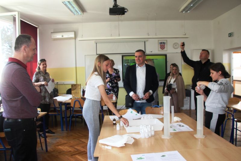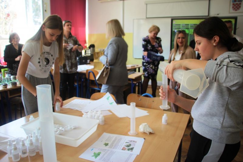 Tim povodom Školu su također danas posjetili ravnatelji i predstavnici škola iz Mađarske, Vojvodine te Bosne i Hercegovine, gosti Osnovne škole „Stjepan Radić“ iz Božjakovine s kojom ostvaruju uspješnu suradnju u međunarodnim projektima. Uz inozemne goste, Školu su danas posjetili i ravnatelj OŠ „Stjepan Radić“ iz Božjakovine Jure Mišković, ravnatelj OŠ Rugvica Robert Munđer te ravnatelj OŠ „Ivan Benković“ Branko Goleš, a sve njih pozdravila je ravnateljica Škole Mara Mamuza koja ih je upoznala s današnjim aktivnostima. Goste je posebno impresionirala Miomirisna radionica u kojoj su učenici 6. i 8. razreda izrađivali aromatične proizvode uzgojene u Školskom vrtu - vrećice od lavande, sirupa od matičnjaka, čajeve, sušeno začinsko bilje te razne hidrolati, odnosno cvjetne vodice. Među brojnim radionicama koje se inače održavaju tijekom jutarnje i popodnevne smjene, učenici su doista mogli zadovoljiti sve svoje interese – od sportskih, glazbenih i plesnih natjecanja, matematike, filmske i animatorske radionice, kriptografije, glagoljice, jezične radionice, dramske radionice i biblijskog kazališta, zastave svijeta, sigurnost u prometu te mnoge druge. Žamor i šušur vlado je školskim hodnicima, a vidljivi osmjesi na dječjim licima koja više nisu sakrivena maskama, podsjetili su na protekla, ponovno oživljena, normalna vremena.