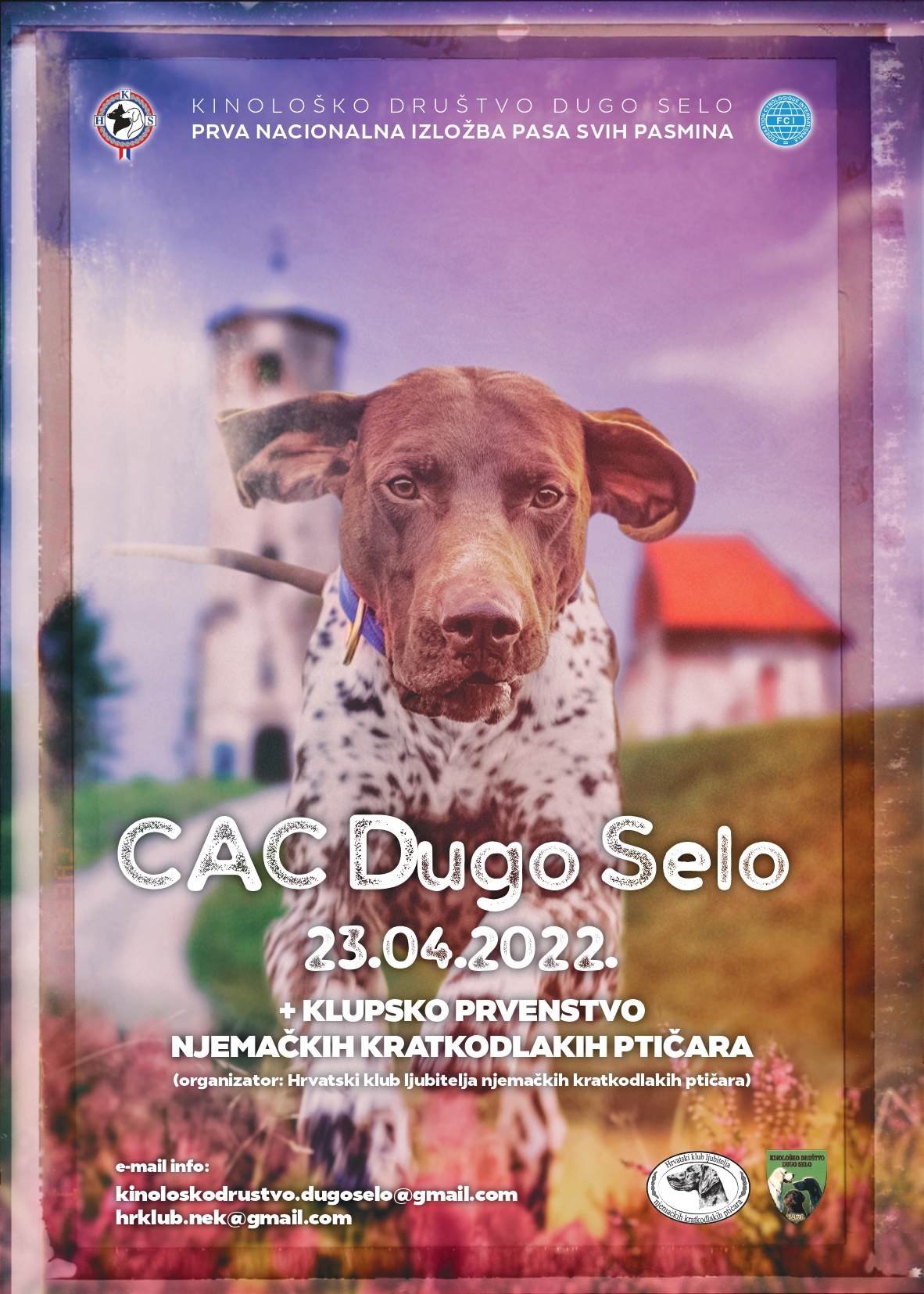 Kinološko društvo Dugo Selo organizira Nacionalnu izložbu svih pasmina CAC Dugo Selo 2022, a Hrvatski klub ljubitelja njemačkih kratkodlakih ptičara CAC HR klupsku izložbu njemačkih kratkodlakih ptičara Club Championship for Deutscher Kurzhaar Vorstehhund.