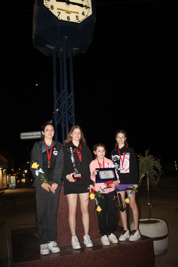 Stolnotenisačice ŠSD Dugo Selo, učenice OŠ Josipa Zorića Mara Markovanović, Mia Horvatiček, Barbara Tepeš i Tia Pranjić, osvojile su zlato na Državnom prvenstvu za školske  sportske klubove Republike Hrvatske, održanom od 2. do 4. svibnja u Poreču u organizaciji Hrvatskog školskog sportskog saveza i suorganizaciji Hrvatskog stolnoteniskog saveza. Državne prvakinje i njihovi treneri vratili su se večeras, a u centru grada su ih dočekali ponosni roditelji i gradonačelnik Nenad Panian.