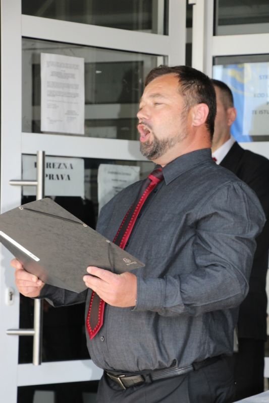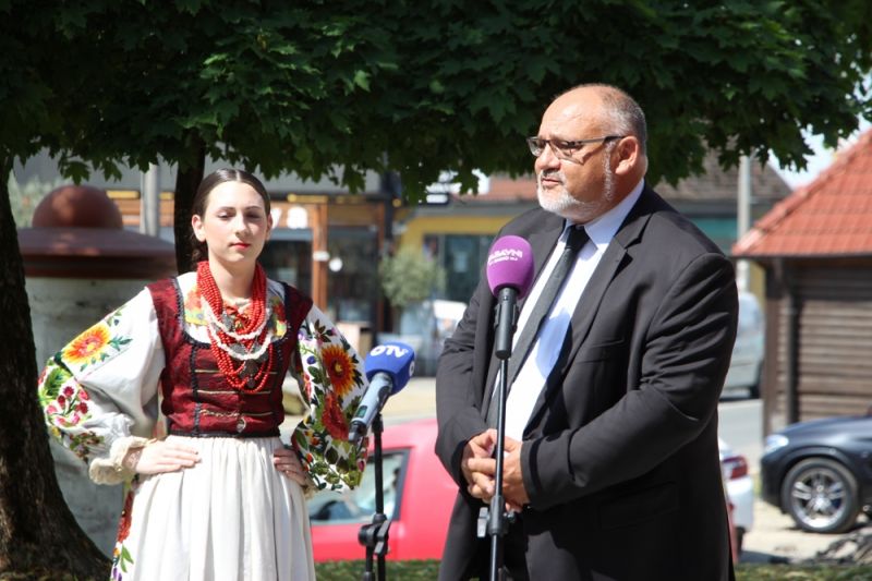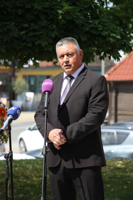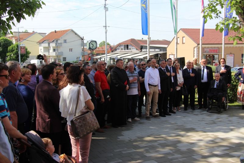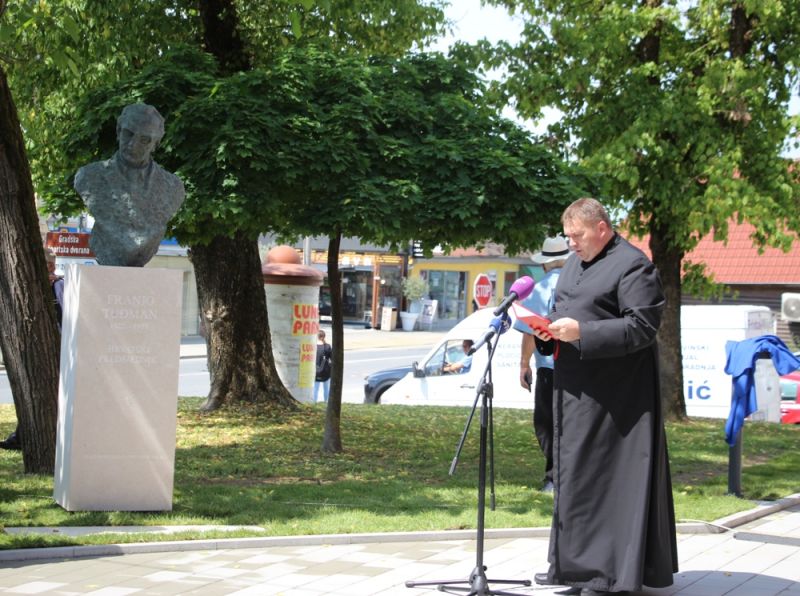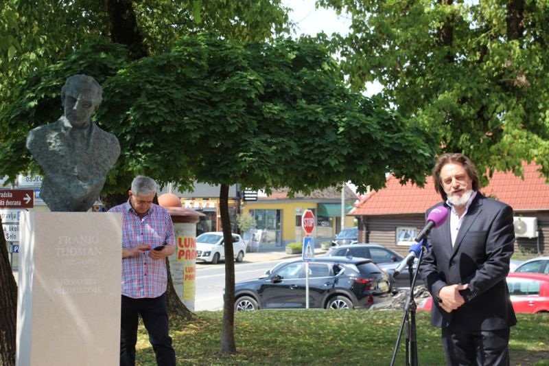Umirovljeni brigadir Miodrag Demo svima se obratio u ime inicijatora postavljanja ovog spomenika – gradskog vijećnika Pave Vukelića, koji se zbog zdravstvenih razloga povukao s vijećničkog mjesta te nije bio u mogućnosti prisustvovati današnjoj svečanosti. „Doktor Tuđman je tvorac hrvatske države i svi koji se trude neće ga dostići. Danas imamo Hrvatsku, ali nemamo zajedništvo. Ljudi, treba nam vratiti hrvatsku sloga s početka stvaranja države“, istaknuo je umirovljeni brigadir Demo.