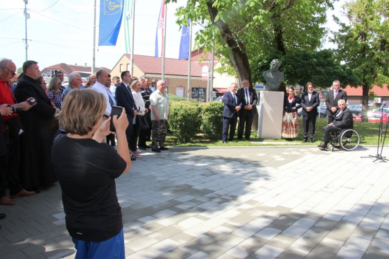 Bistu dr. Tuđmana svečano su otkrili gradonačelnik Panian i autor, kipar Kujundžić koji je kazao kako je bilo najteže portretirati kompleksnu karakternu i psihološku crtu Tuđmanove osobnosti. „ Vodio sam se s dvije njegove velike vrline – njegova lirska duša te njegova vizija i sposobnost komunikacije i vođenja hrvatskog naroda – to su njegove like vrednote“, pojasnio je Kujundžić. Okupljenima se na današnjoj svečanosti ispred Gradske uprave obratio i dugoselski župnika Tomislav Kralj, a svojim nastupom atmosferu su upotpunili članovi vokalnog ansambla DUGA izvevši nekoliko izvedbi, zaključivši dugoselskom himnom – Dugoselskom popevkom. I.G.O.