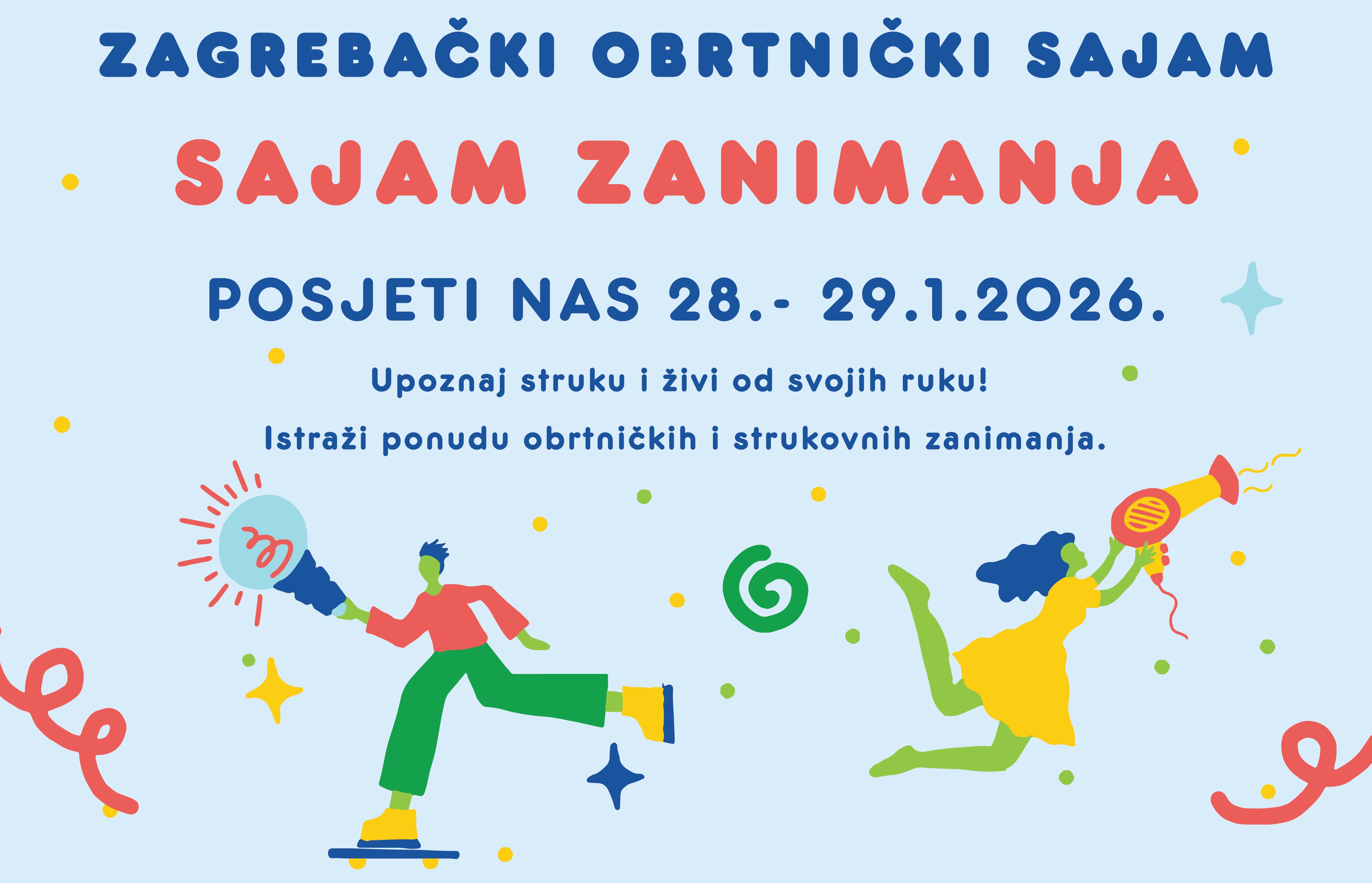 Gotovo 60 raznih obrtničkih i strukovnih zanimanja predstavit će se budućim srednjoškolcima u okviru 11. Zagrebačkog obrtničkog sajma – sajma zanimanja (ZOS) u organizaciji Obrtničke komore Zagreb, koji će se 28. i 29. siječnja održati na Zagrebačkom velesajmu, u paviljonima 7 i 7a. Ulaz na ZOS je besplatan, a predstavit će se 25 obrtničkih i srednjih strukovnih škola Grada Zagreba i Zagrebačke županije.