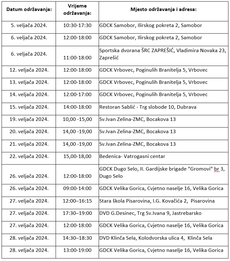 Društva Crvenog križa Zagrebačke županije tijekom veljače provodit će redovite akcije dobrovoljnog darivanja krvi na više lokacija. U Dugom Selu krv možete darivati 26.veljače od 12 do 18 sati u GDCK-u.