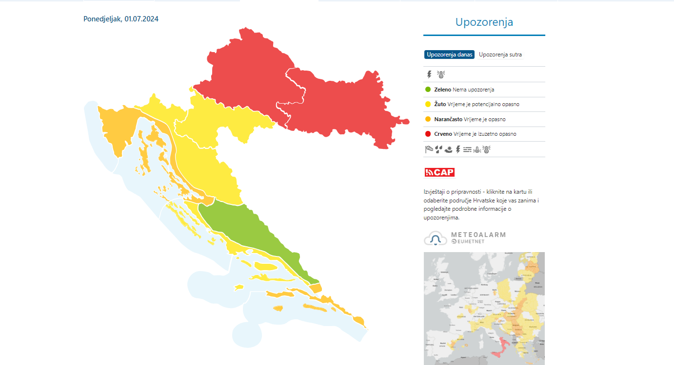 DHMZ upozorava na opasne vremenske prilike, Zagrebačka regija je u popodnevnim satima u crvenom.