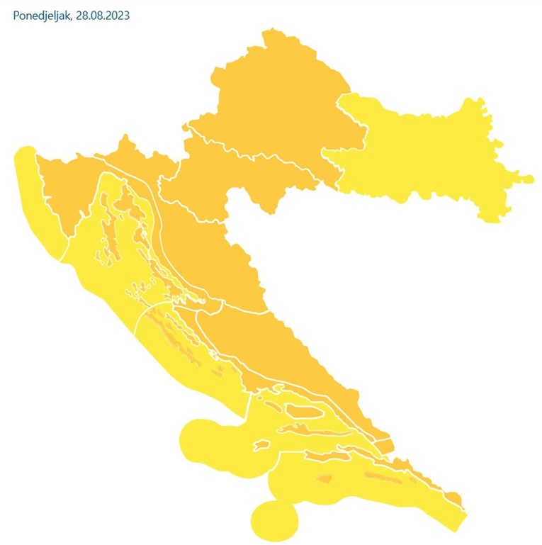 Vrhunac toplinskog vala prošao je jučer, gotovo za cijelu Hrvatsku bilo je na snazi crveno upozorenje Meteoalarma. I danas je vruće, no temperatura je nešto niža. Na snazi je za danas narančasto upozorenje zbog vrućina, ali već večeras stiže promjena vremena koja će sutra zahvatiti cijelu zemlju zbog čega je objavljeno narančasto upozorenje za veći dio Hrvatske - stiže kiša, grmljavina... U narančastom je zbog mogućnosti nevremena i zagrebačka regija.