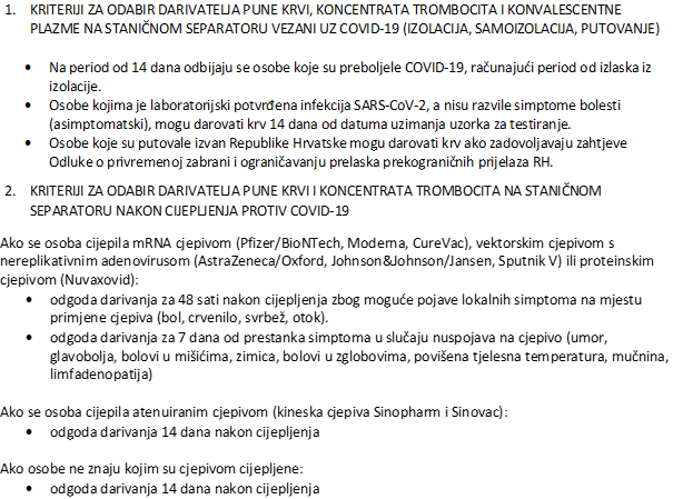Pritom su svi dobrovoljni darivatelji krvi dužni poštivati sljedeće epidemiološke mjere i kriterije: