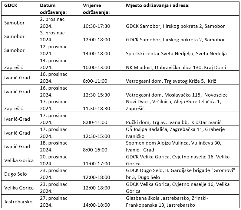 Društva Crvenog križa Zagrebačke županije tijekom prosinca provodit će redovite akcije dobrovoljnog darivanja krvi na više lokacija.