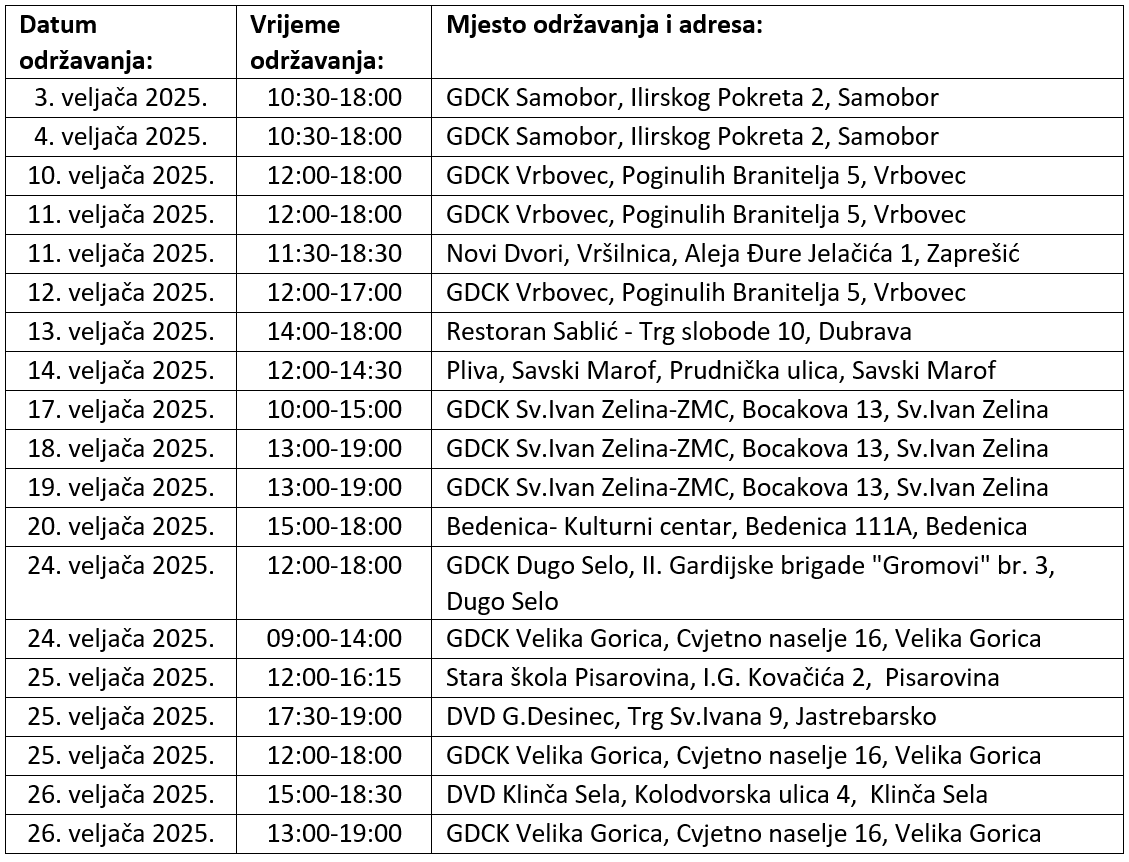 Društva Crvenog križa Zagrebačke županije tijekom veljače provodit će redovite akcije dobrovoljnog darivanja krvi na više lokacija.