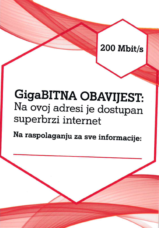 - radovi su u potpunosti besplatni (odnose se na pripremne radove, montaža razvodne kutije na objekt vlasnika i spajanje na najbliži stup mreže),