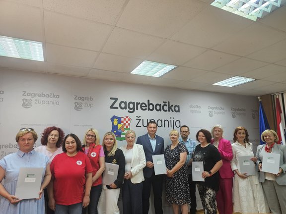 Za sve gerontodomaćice u sklopu projekta „Zaželi – prevencija institucionalizacije“ Zagrebačka županija osigurala je regres i božićnicu. Ugovore vrijedne 68.600 eura zamjenik župana Ervin Kolarec uručio je predstavnicima gradskih društava Crvenog križa s područja Zagrebačke županije.